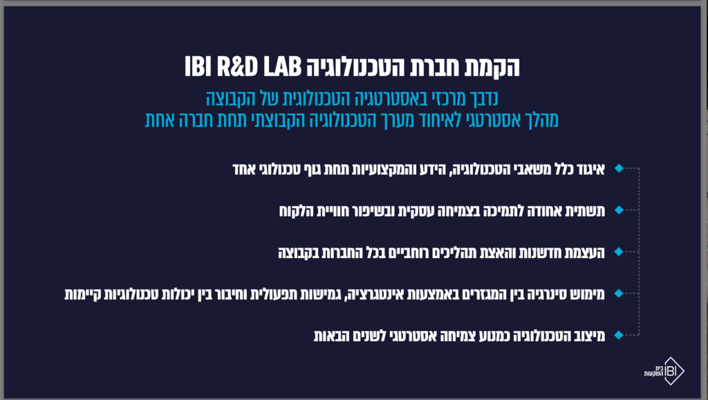 כנראה המהלך החשוב ביותר והתומך ביותר ביכולת של החברה לצמוח זה הקמה של מערך טכנולוגי חוצה ארגון, שיודע לתמוך בפיתוח, אוטומציה, התממשקות מערכות ועוד בצורה יעילה ומתוך החברה ולא דרך קבלני משנה כאלה ואחרים. נניח מהלך משמעותי שנעשה השנה זה העברת כל מערכות החברה להתחברות בצורה אחידה, ועם יכולת להתחבר דרך קוד חד פעמי שנשלח לטלפון. הדבר מאחד מערכות ומונע הרבה מאוד קריאות למחלקת שירות לקוחות וכן הלאה. המחלקה הזאת תוכל להאיץ פיתוחים, לקצר זמן יציאה לשוק עם מערכות ופיצ׳רים ולהאיץ אוטומציה בארגון על מנת לתמוך ביכולת של החברה לא להגדיל כוח אדם (או להגדיל בצורה מינימלית) עם המשך הצמיחה המסיבי.