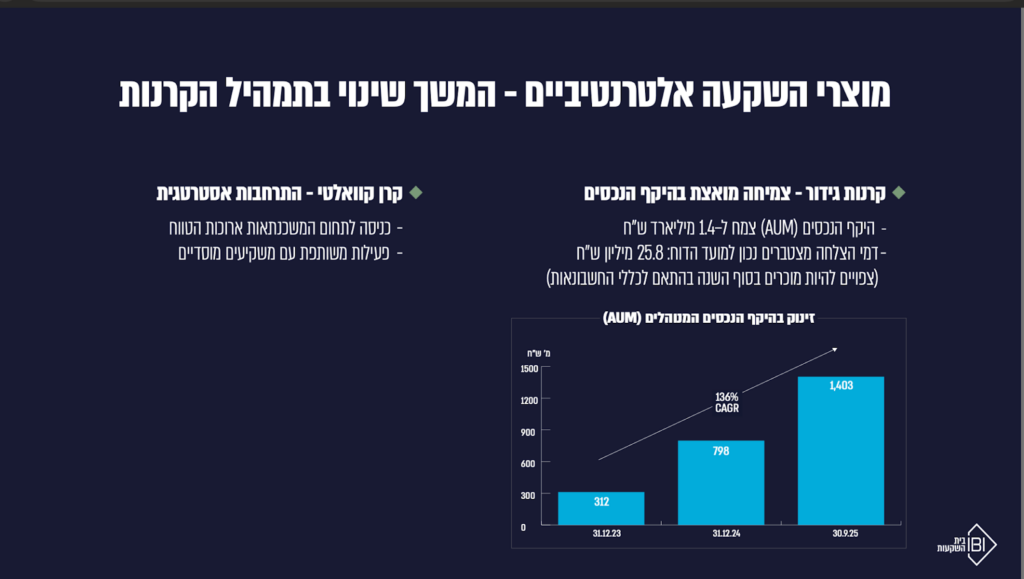 המספרים פשוט פנומנליים, החברה צמחה מסוף 23 מ-300 מיליון ש״ח נכסים ל-1.4 מיליארד ש״ח בפחות משנתיים. זה פשוט צמיחה מטורפת למוצר שהוא נחשב מאוד רווחי. אני חושב שאיביאי יכולה להפוך להיות אחת מחברות קרנות הגידור הגדולות בישראל, ובכללי מראה את היכולת של החברה להקים מוצרים ולקחת אותם להצלחה אדירה. מי שמכיר את עולם הגידור מבין שהגדילה פה היא באמת סיפור הצלחה מדהים, ומהווה רגל מאזנת בצד האקוויטי לפעילות קרנות החוב של החברה, במוצר שיש לו ביקוש גדול כמו שרואים.
